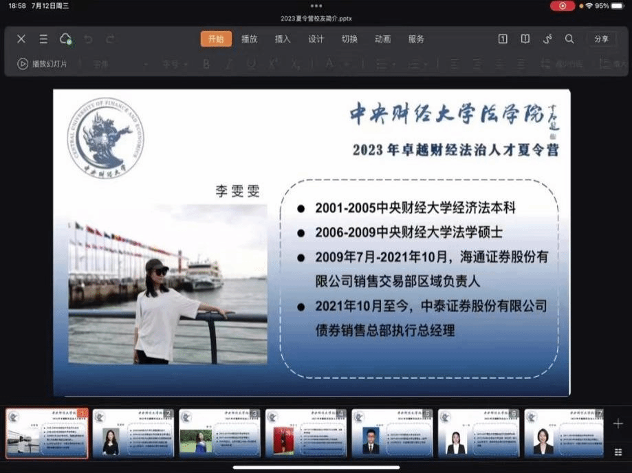 接下來七位優(yōu)秀校友代表依次進行了經(jīng)驗分享。首先,由李雯雯校友和樊瀟婷校友分別對于在證券投行等相關(guān)領(lǐng)域工作的經(jīng)驗感受,李雯雯校友主要就債券領(lǐng)域進行了較微觀的分享,樊瀟婷校友對于證券領(lǐng)域給出了更宏觀的分析。之后,雷悅校友強調(diào)了在研究生學(xué)習(xí)期間注重對于學(xué)術(shù)方面能力的提升并鼓勵營員們善于從學(xué)生工作經(jīng)歷和實習(xí)機會中汲取經(jīng)驗,同時分享了自己法院工作的經(jīng)歷感受。在此之后,由項宇飛校友對于證券領(lǐng)域股權(quán)方面進行了分享,并結(jié)合個人的基本情況,在校學(xué)習(xí)與工作經(jīng)歷和在學(xué)業(yè)選擇中對于就業(yè)的考慮向營員們提出了寶貴建議。然后,宋昊軒校友就自己的學(xué)習(xí)工作經(jīng)歷,對于中財法學(xué)院的認(rèn)識與感受和研究生就讀與就業(yè)建議三方面進行了講述。孫一瑋校友對于自己的學(xué)習(xí)工作經(jīng)歷進行介紹,著重指出了論文寫作能力和溝通能力的重要性。最后,宋亦淼校友對于自己在學(xué)術(shù)科研方面的經(jīng)歷,實習(xí)經(jīng)歷和求職體驗進行了分享并就如何提升個人核心競爭力提出了建議。