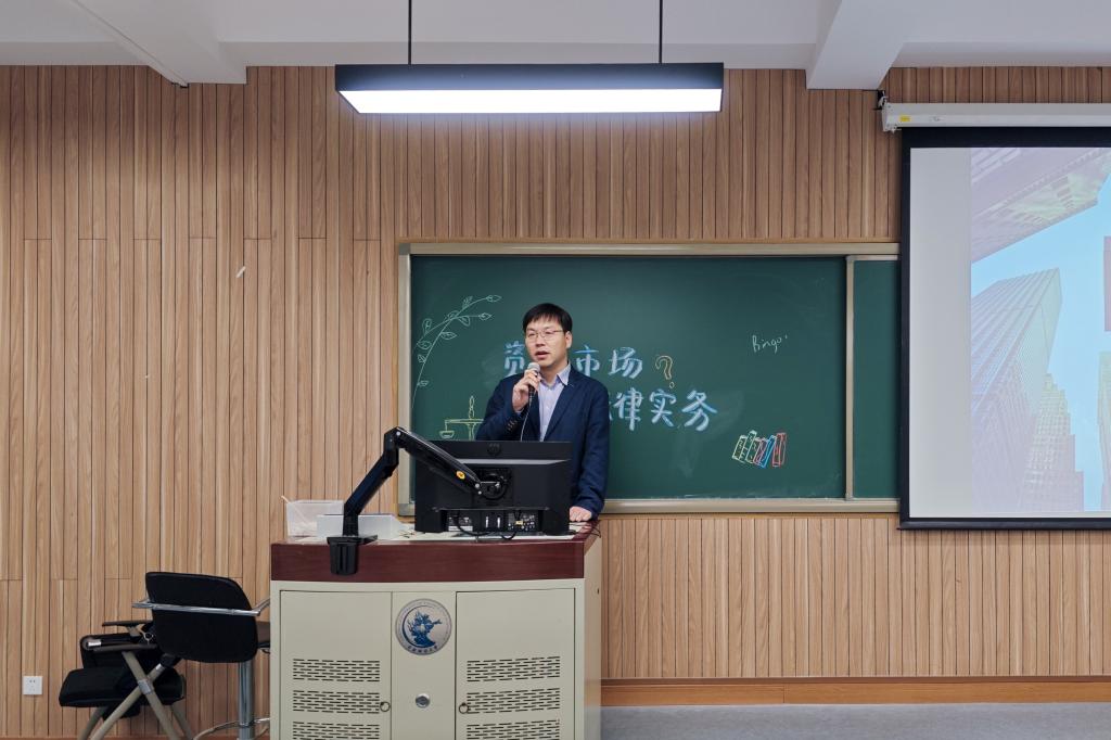 講座開始,晏國哲律師從“資本市場”這一概念出發(fā),引導(dǎo)同學(xué)們對本次講座主題進行深入思考。他結(jié)合資本市場定義,以我國融資方式、金融機構(gòu)種類等內(nèi)容為補充,強調(diào)了資本市場在國內(nèi)與國際經(jīng)濟發(fā)展中的重要性和發(fā)展前景,鼓勵同學(xué)們積極參與相關(guān)企業(yè)或機構(gòu)的實習(xí),積累實務(wù)經(jīng)驗。