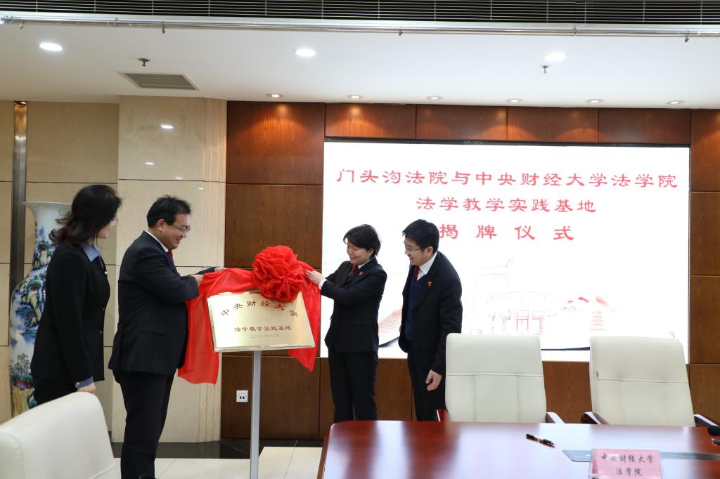 隨后,院黨委副書記徐穎研究員與門頭溝區(qū)人民法院政治處主任袁煜馳共同簽署了《法治實踐教學(xué)與研究戰(zhàn)略合作協(xié)議》,院長尹飛教授與門頭溝區(qū)人民法院黨組副書記、副院長安輝為校外實踐基地揭牌。
