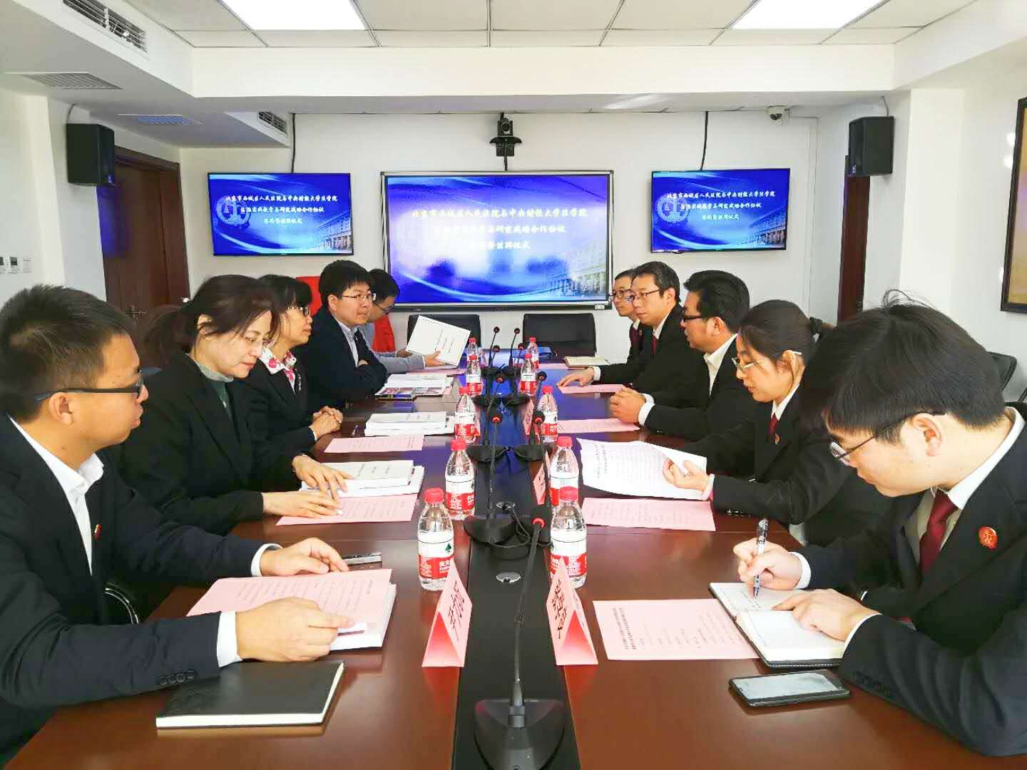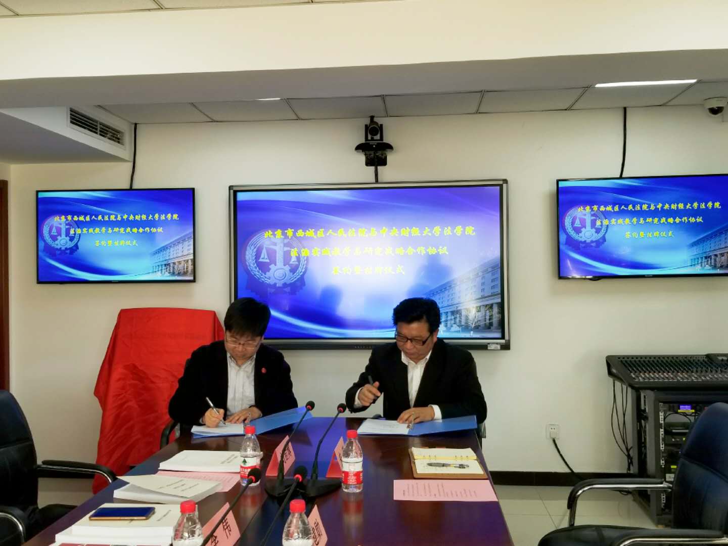 2018年12月27日下午,中央財經大學法學院與北京市西城區(qū)人民法院舉行了《法治實踐教學與研究戰(zhàn)略合作協(xié)議》簽約儀式。西城區(qū)人民法院黨組成員、副院長王元田,金融街法庭庭長劉建勛,政治處副主任、干部管理部主任王玲,金融街法庭法官助理宋健,金融街法庭法官助理張學良參加了簽約儀式。中央財經大學法學院黨委副書記徐穎研究員,法學院副院長李偉副教授,北京市金融服務法學研究會會長曾筱清教授,法律實驗與實踐教學中心主任劉君博副教授,院團委書記尹力沉老師出席儀式。儀式由西城區(qū)人民法院金融街法庭庭長劉建勛主持。