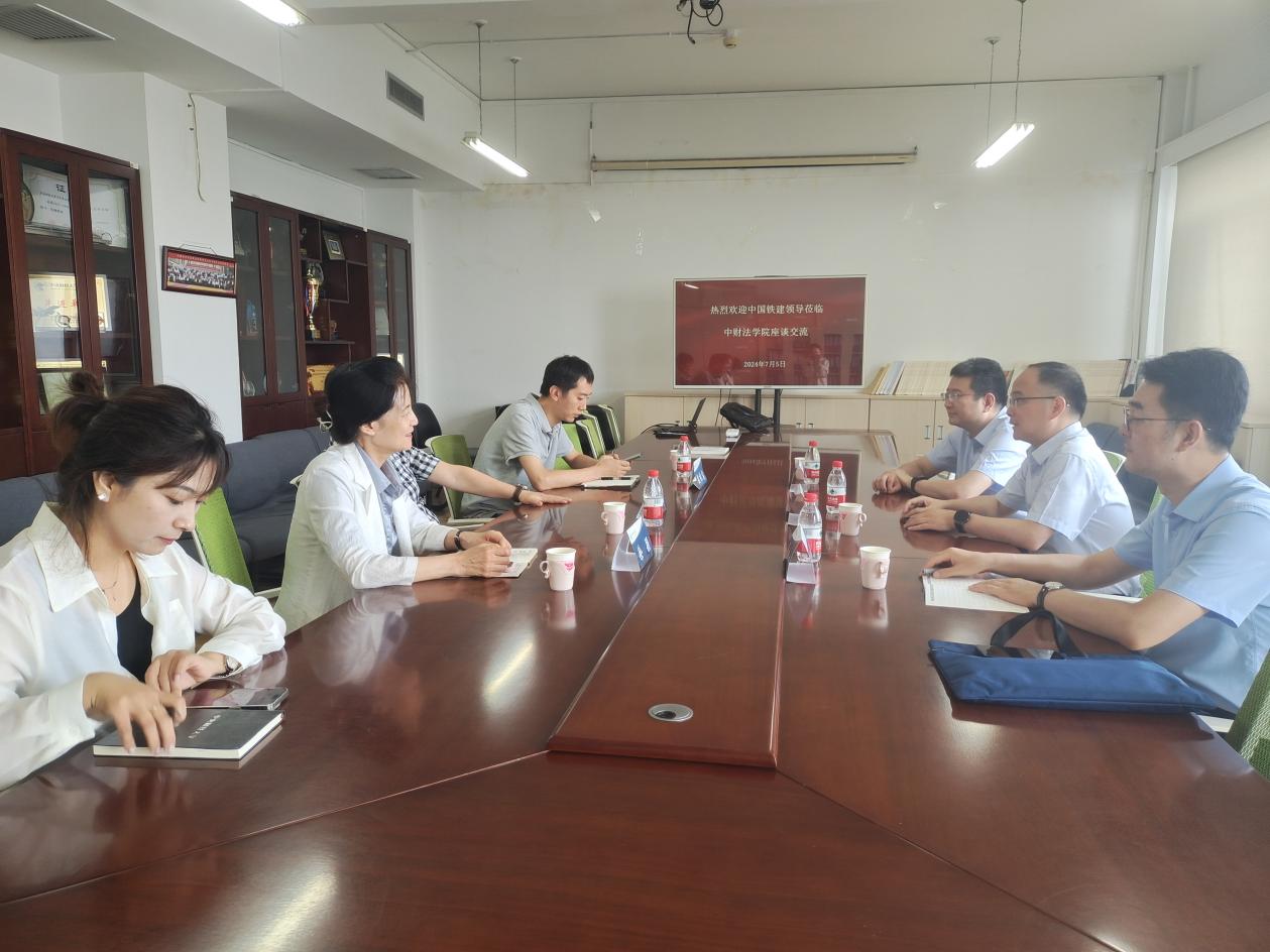 在會(huì)談中,林劍鋒書記代表法學(xué)院對(duì)王裕溪總經(jīng)理一行來學(xué)院座談交流表示歡迎,對(duì)中國鐵建法律合規(guī)部長期以來的支持表示感謝。首先,他介紹了學(xué)院和法學(xué)學(xué)科的整體發(fā)展情況。中央財(cái)經(jīng)大學(xué)法學(xué)院立足我校“雙一流”建設(shè)基本方略,依托學(xué)校財(cái)經(jīng)學(xué)科優(yōu)勢(shì)以及與金融界、法律界的緊密聯(lián)系,育人為本、科研立院,以“一流標(biāo)準(zhǔn) 財(cái)經(jīng)特色”為目標(biāo),堅(jiān)持價(jià)值引領(lǐng)、立足中國實(shí)踐、聚焦數(shù)字時(shí)代、著力風(fēng)險(xiǎn)防控。近年來,學(xué)院在人才培養(yǎng)、學(xué)科發(fā)展、科學(xué)研究和社會(huì)服務(wù)等方面取得了顯著成績。隨后,他著重介紹了學(xué)院之前與不同央企之間協(xié)同培養(yǎng)人才的幾種模式。