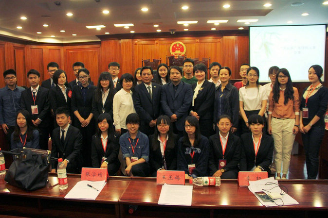2015年5月8日晚7時,由中國政法大學(xué)團委、北京市學(xué)生聯(lián)合會、北京市高等學(xué)校社團聯(lián)合會、中國政法大學(xué)社團聯(lián)合會主辦,中國政法大學(xué)準(zhǔn)律師協(xié)會承辦的第十二屆“圣運杯”準(zhǔn)律師大賽決賽在中國政法大學(xué)明法樓407模擬法庭舉行。來自中國政法大學(xué)、中國人民大學(xué)、北京外國語大學(xué)、南開大學(xué)、中央財經(jīng)大學(xué)六所高校的八強選手進入決賽,展開激烈角逐。我院部分法律碩士研究生旁聽了決賽。