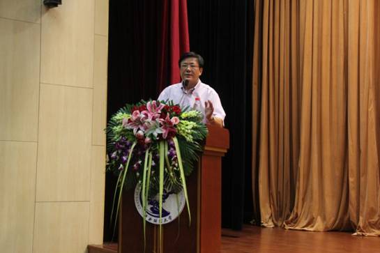 在接下來(lái)的教師寄語(yǔ)環(huán)節(jié)中,高秦偉教授用一個(gè)“中央大學(xué)和地方大學(xué)”的基本判斷、一個(gè)“經(jīng)濟(jì)基礎(chǔ)決定上層建筑”的經(jīng)典語(yǔ)錄、一個(gè)“一期一會(huì)”的茶道禪語(yǔ),鼓勵(lì)新生首先要熱愛(ài)自己的學(xué)校自己的專(zhuān)業(yè),再次要注重培養(yǎng)自己的法學(xué)精神,樹(shù)立崇高理想,戒驕戒躁,最后要珍惜我們?cè)谥胸?cái)法學(xué)院共同學(xué)習(xí)生活的這段緣分。高老師幽默的話(huà)語(yǔ)引得全場(chǎng)掌聲不斷和嚴(yán)謹(jǐn)?shù)乃季S同時(shí)又潤(rùn)物無(wú)聲。