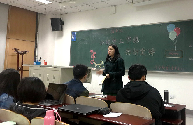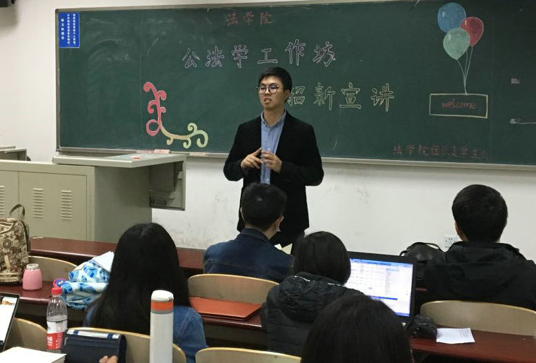 宣講活動首先由申屠良瑜同學(xué)介紹公法學(xué)工作坊的基本情況、源起歷程以及發(fā)展方向。工作坊自2015年首創(chuàng)以來,致力于為法科同學(xué)提供研讀公法經(jīng)典著作,深入思考公法基本問題,交流討論公法熱點(diǎn)案件的機(jī)會與平臺。自創(chuàng)辦以來得到了學(xué)院領(lǐng)導(dǎo)、老師的大力支持,在憲法行政法教研室和法理學(xué)教研室老師們的指導(dǎo)下,開展了多次頗具影響力的活動。在接下來的時間里,工作坊將逐漸走向成熟,努力為廣大參與同學(xué)提供更好服務(wù),開展更多有益的活動,使參與的同學(xué)們能夠切實(shí)地從中受益。