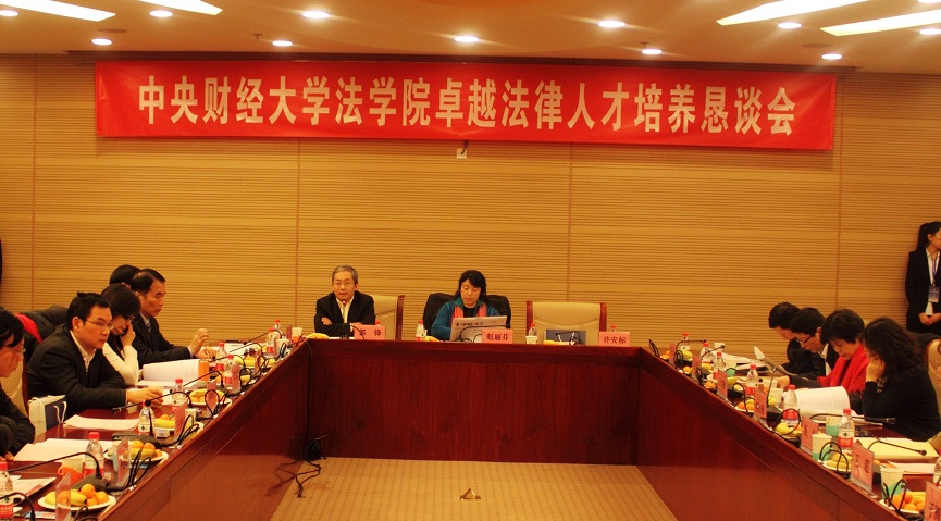 中央財(cái)經(jīng)大學(xué)法學(xué)院卓越法律人才培養(yǎng)懇談會于12月23日下午在中央財(cái)經(jīng)大學(xué)學(xué)術(shù)會堂舉行。屋外寒風(fēng)凜冽,屋內(nèi)暖意濃濃。法學(xué)院校內(nèi)外導(dǎo)師和特邀代表濟(jì)濟(jì)一堂,共商中財(cái)法學(xué)院卓越法律人才培養(yǎng)大計(jì)。中央財(cái)經(jīng)大學(xué)趙麗芬副校長出席會議并致辭。