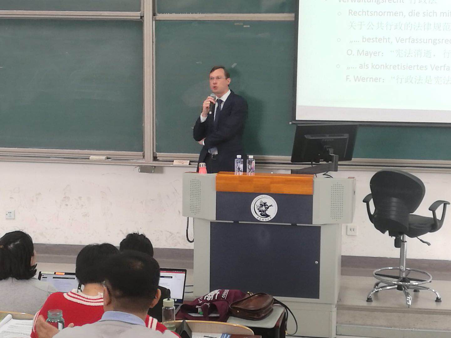 MatthiasKnauff教授任教于德國(guó)耶拿大學(xué)法學(xué)院公法教席,兼任德國(guó)圖靈根州高等法院公共采購(gòu)?fù)シü伲兄鷮?shí)的法學(xué)理論功底和法學(xué)實(shí)踐經(jīng)驗(yàn)。整場(chǎng)講座,MatthiasKnauff教授用通俗易懂的表述,結(jié)合生動(dòng)有趣的案例,為同學(xué)們介紹了德國(guó)行政法及其相關(guān)程序。MatthiasKnauff教授以行政的任務(wù)及其法律基礎(chǔ)為切入點(diǎn),為同學(xué)們重點(diǎn)闡述了德國(guó)行政法中行政活動(dòng)所涉及的范疇,并詳細(xì)解讀了相關(guān)條文釋義,讓同學(xué)們對(duì)德國(guó)行政法有了最直接的整體把握,為以后的比較學(xué)習(xí)奠定了堅(jiān)實(shí)的理論基礎(chǔ)。