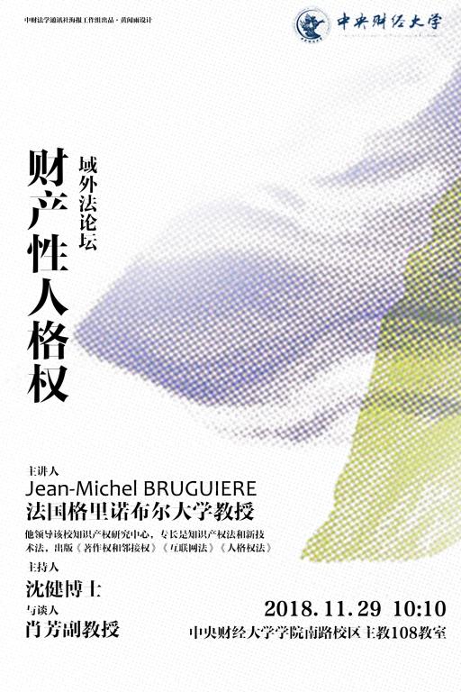 Jean-Michel BRUGUIERE是法國格里諾布爾大學(xué)的教授,他領(lǐng)導(dǎo)著該大學(xué)知識產(chǎn)權(quán)研究中心(CUERPI), 負(fù)責(zé)知識產(chǎn)權(quán)和新技術(shù)法的碩士項目。他的專長是知識產(chǎn)權(quán)法和新技術(shù)法,尤其是著作權(quán)法。他出版了許多著作,包括與米歇爾·維萬特在Dalloz出版社出版的《著作權(quán)和鄰接權(quán)》,以及在lexisnexis出版社出版的《互聯(lián)網(wǎng)法》。他也是巴黎一家律師事務(wù)所的兼職律師。雖然他是知識產(chǎn)權(quán)法專家,他從未停止對民法的研究興趣。他教授民法多年,就人身和財產(chǎn)權(quán)利問題出版了很多著作,包括在Ellipses出版社出版的專著《人格權(quán)法》。
