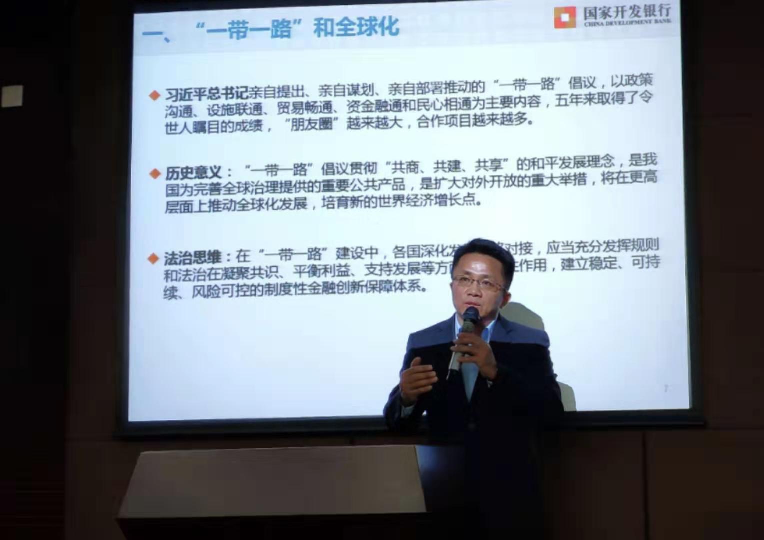 講座開始后,孟剛副局長以“一帶一路”為切入點,結(jié)合工作實踐,深入淺出地介紹了“一帶一路”的具體工作。講座從國際法治合作層面、國別法律風險管理層面、項目法律風險管理層面、金融合作層面、公司依法治理層面、反洗錢和制裁合規(guī)層面,以及非強制性金融行業(yè)基準等多層次、多維度闡釋了“一帶一路”治理和發(fā)展的規(guī)制與措施建議。他認為,在當前形勢下,人民幣國際化進程既是推進“一帶一路”倡議實施的重要舉措,也是“一帶一路”建設(shè)的重要成果。因此,如何更好地輔以市場化和法治化原則,推進二者的協(xié)同發(fā)展,將是最具深遠意義的金融創(chuàng)新。