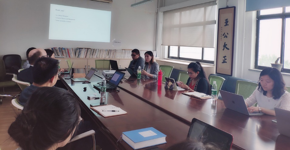 2019年5月15日中午,倫敦大學(xué)亞非學(xué)院Richard Alexander教授在中央財(cái)經(jīng)大學(xué)法學(xué)院授課期間,在我院舉行了一場(chǎng)題為“歐盟防范市場(chǎng)濫用的制度演進(jìn)”講座。我院副院長(zhǎng)王克玉教授、杜晶副教授、院長(zhǎng)助理沈健博士、時(shí)業(yè)偉博士、馬靜遠(yuǎn)博士和外事助理康馨元老師,以及我院部分博士生和研究生參加了講座。講座開(kāi)始前,尹飛院長(zhǎng)對(duì)Richard教授表示歡迎并贈(zèng)送禮物致謝。講座由我院講師李敏博士主持。