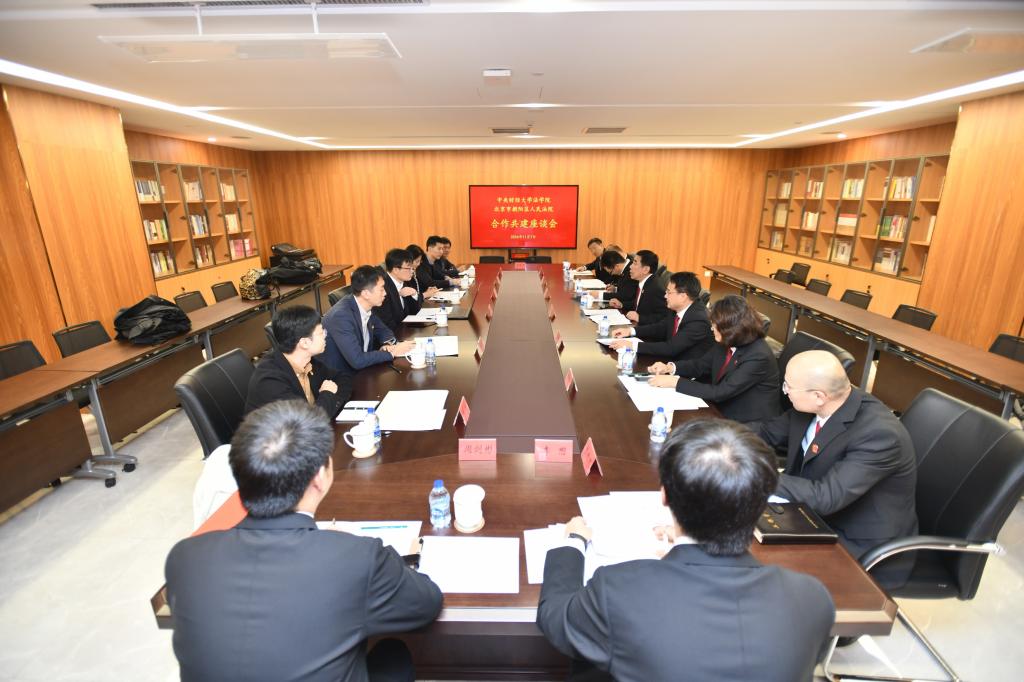 座談會(huì)由王國才副院長主持。龔浩鳴院長在致辭中表達(dá)了對(duì)中央財(cái)經(jīng)大學(xué)法學(xué)院一行的歡迎,并詳細(xì)介紹了朝陽區(qū)人民法院的相關(guān)情況,表達(dá)了在法治人才培養(yǎng)、專業(yè)隊(duì)伍建設(shè)等方面加強(qiáng)與中央財(cái)經(jīng)大學(xué)法學(xué)院進(jìn)一步合作的意向。龔浩鳴院長特地匯總了12位畢業(yè)于中央財(cái)經(jīng)大學(xué)法學(xué)院的“朝法人”目前在朝陽法院工作的情況,表達(dá)了對(duì)中央財(cái)經(jīng)大學(xué)法學(xué)院畢業(yè)生的高度認(rèn)可。林劍鋒書記在致辭中首先對(duì)朝陽區(qū)人民法院細(xì)致工作安排的表示感謝,之后詳細(xì)介紹了中央財(cái)經(jīng)大學(xué)法學(xué)院的黨建特色、學(xué)科建設(shè)、人才培養(yǎng)、科學(xué)研究、服務(wù)社會(huì)等情況。雙方隨后就黨建交流、涉外法治人才培養(yǎng)協(xié)同創(chuàng)新基地建設(shè)、資源共享、實(shí)踐導(dǎo)師與實(shí)習(xí)生機(jī)制等議題進(jìn)行了深入交流。