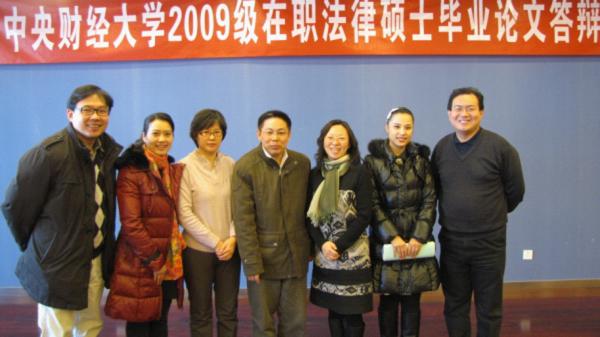 經(jīng)過三年的學(xué)習(xí),首屆房地產(chǎn)登記方向在職法碩研究生并在導(dǎo)師中央財經(jīng)大學(xué)房地產(chǎn)法研究中心主任尹飛教授指導(dǎo)下完成了學(xué)位論文。經(jīng)導(dǎo)師尹飛教授推薦,并經(jīng)包括著名不動產(chǎn)登記法學(xué)者清華大學(xué)法學(xué)院程嘯副教授在內(nèi)的三位校內(nèi)外專家評閱,2011年12月24日,首屆房地產(chǎn)登記方向的三名在職法碩研究生參加了學(xué)院專門組織的論文答辯會。答辯委員會主席為住房和城鄉(xiāng)建設(shè)部市場監(jiān)管司副巡視員楊佳燕女士,答辯委員會委員分別為中央財經(jīng)大學(xué)法學(xué)院博士生導(dǎo)師、民法學(xué)科帶頭人陳華彬教授;中央財經(jīng)大學(xué)法學(xué)院張琪副教授。經(jīng)過嚴(yán)格的答辯,答辯委員會進行了認(rèn)真合議和匿名表決。最終來自瀘州市房屋產(chǎn)權(quán)交易所的田芳,來自成都市房屋產(chǎn)權(quán)登記中心的崔永強、鄧歡通過了論文答辯。