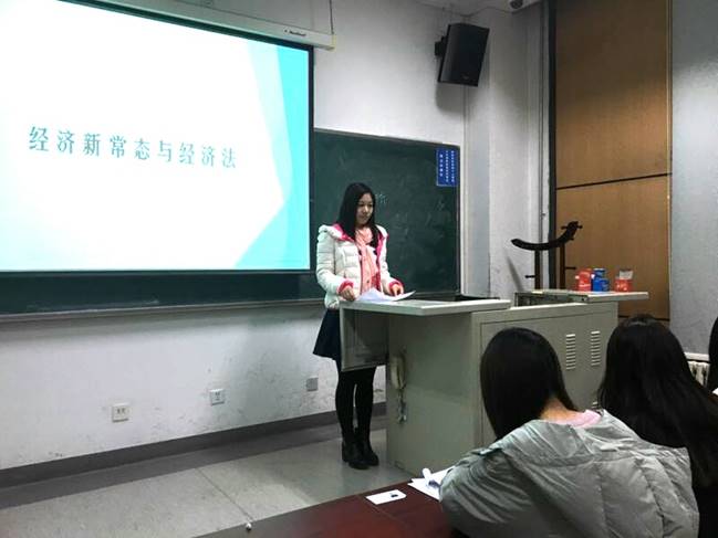 首先,展凱莉同學(xué)針對自己本次所做的“經(jīng)濟(jì)新常態(tài)與經(jīng)濟(jì)法”這一專題進(jìn)行了總結(jié):對于經(jīng)濟(jì)新常態(tài)的概念、特征、要求、出現(xiàn)的問題和對策研究,國內(nèi)學(xué)者已取得進(jìn)一步的進(jìn)展,但是縱觀各學(xué)者的研究,發(fā)現(xiàn)對于經(jīng)濟(jì)新常態(tài)與經(jīng)濟(jì)法的關(guān)系和應(yīng)用方面的論文著作數(shù)量較少,因此就經(jīng)濟(jì)新常態(tài)這一問題目前存在的學(xué)者的相關(guān)研究結(jié)果進(jìn)行整合,從縱向和橫向兩個階段來整理現(xiàn)有著作,并將經(jīng)濟(jì)新常態(tài)與經(jīng)濟(jì)法結(jié)合,用經(jīng)濟(jì)法的思維看待經(jīng)濟(jì)新常態(tài)這一經(jīng)濟(jì)學(xué)知識,分析、探究二者的關(guān)系和發(fā)展方向,促進(jìn)法治新常態(tài)與經(jīng)濟(jì)新常態(tài)齊頭并進(jìn)和諧發(fā)展,并希望各位同學(xué)多多指教。