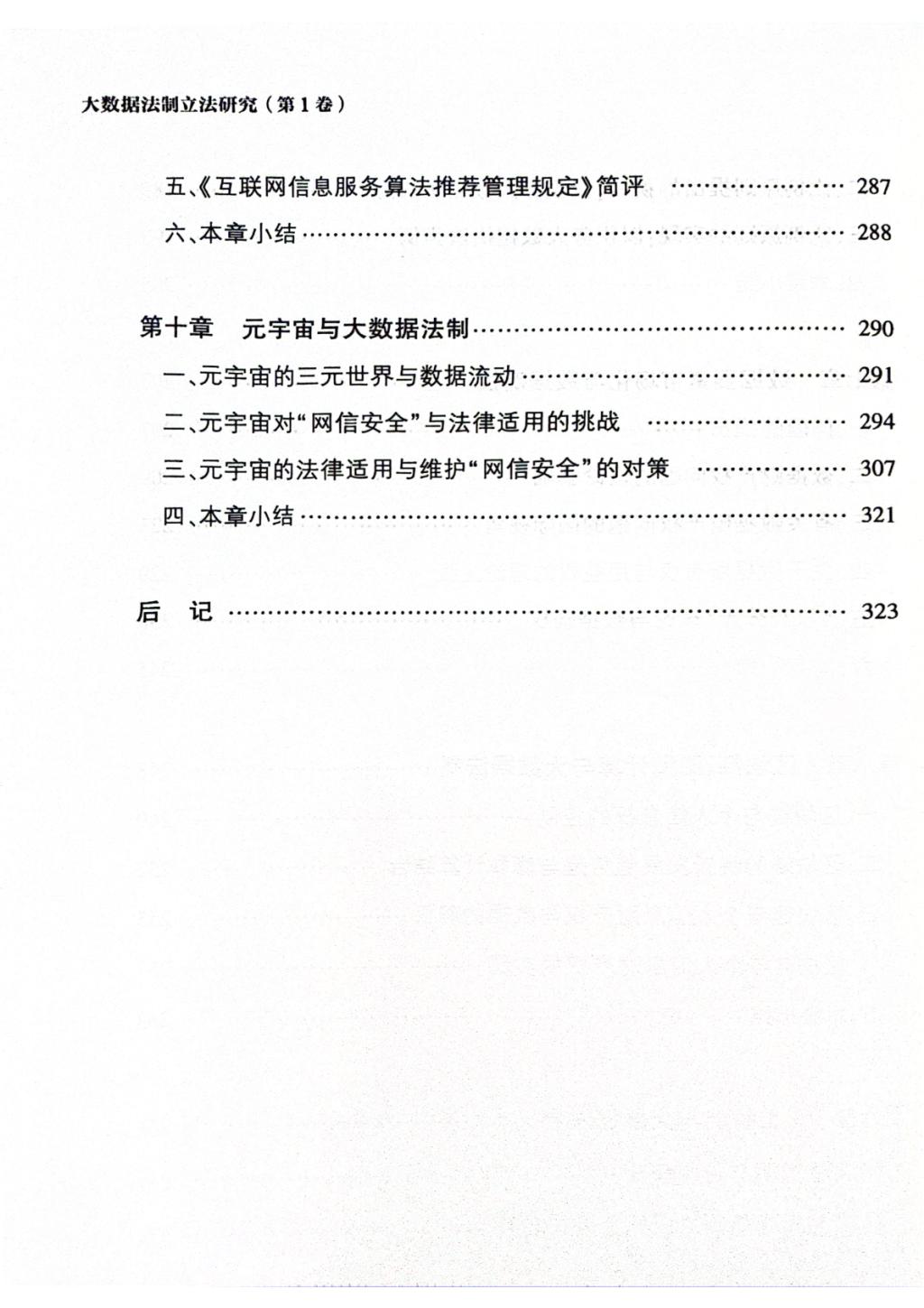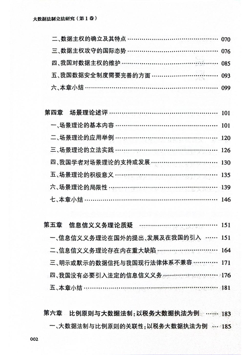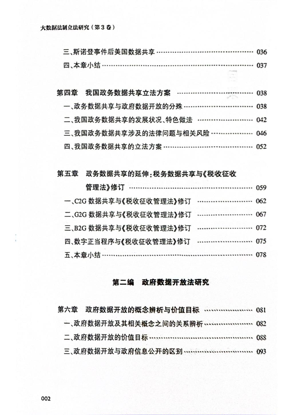 《大數(shù)據(jù)法制立法研究》共分為四卷,91.6萬字。第一卷為《大數(shù)據(jù)法制立法的基礎理論研究》,主要研究相關基本概念、立法模式、立法理念、重要理論等基礎理論問題。第二卷為《個人信息保護法的解釋、實施與完善》,該部分將重點論述個人信息保護法的解釋和實施過程中的若干重要疑難問題。第三卷為《數(shù)據(jù)共享與開放法律問題研究》,下設三編:第一編為政務數(shù)據(jù)共享法研究。這是規(guī)范政務數(shù)據(jù)在政務部門之間有序共享,切實保護個人信息權(quán)益的重要法律,也是大數(shù)據(jù)時代亟待立法的法律。第二編為政府數(shù)據(jù)開放法研究。這是發(fā)揮政府掌握的大數(shù)據(jù)資源,發(fā)揮大數(shù)據(jù)紅利,促進創(chuàng)業(yè)創(chuàng)新,激發(fā)市場活力的重要法律,也是大數(shù)據(jù)時代亟待立法的法律。第三編為數(shù)據(jù)交易法研究。這是盤活企業(yè)掌握的數(shù)據(jù)資源,促進企業(yè)之間數(shù)據(jù)資源共享的重要法律,是大數(shù)據(jù)時代亟待立法的重要法律。第四卷為《數(shù)據(jù)跨境流動法律制度研究》,重點論述數(shù)據(jù)跨境流動所涉及的個人信息保護法和數(shù)據(jù)安全法問題。