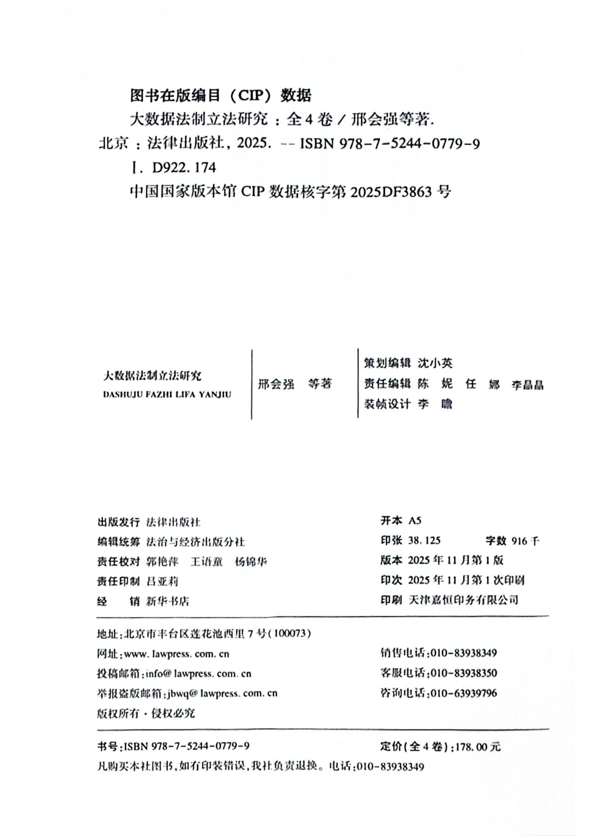 日前,由中央財經(jīng)大學法學院教授邢會強等著的《大數(shù)據(jù)法制立法研究》四卷本在法律出版社出版發(fā)行。