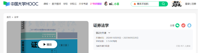 在“中國大學(xué)MOOC網(wǎng)”上線并持續(xù)運(yùn)行《證券法學(xué)》《知識(shí)產(chǎn)權(quán)法》《合同法》等慕課,推進(jìn)線上一般知識(shí)傳授與線下研討為主的教學(xué)方式變革,在線學(xué)習(xí)人數(shù)持續(xù)增長。