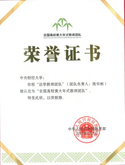 中央財經大學法學教師團隊獲此殊榮,展現了近年來中央財經大學法學學科建設的長足發(fā)展,是對中央財經大學法學教師團隊以教書育人為天職、培養(yǎng)一代又一代卓越法治人才的肯定,是對以淡泊名利的精神和嚴謹的態(tài)度從事法學理論與實務研究的教師團隊的褒獎。