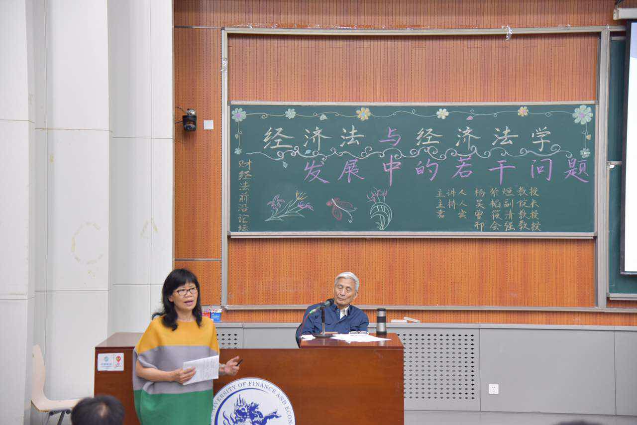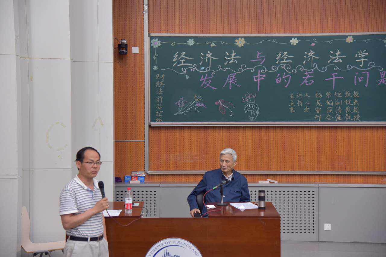 2016年6月1號(hào)晚7點(diǎn),由中央財(cái)經(jīng)大學(xué)法學(xué)院主辦的“財(cái)經(jīng)法前沿論壇”在沙河校區(qū)學(xué)院4號(hào)樓107報(bào)告廳如期舉行。此次講座邀請(qǐng)了北京大學(xué)法學(xué)院教授、博士研究生導(dǎo)師楊紫烜教授。他曾任第九屆全國人民代表大會(huì)代表、全國人大法律委員會(huì)委員、中國法學(xué)會(huì)經(jīng)濟(jì)法學(xué)研究會(huì)顧問。講座主題為“經(jīng)濟(jì)法與經(jīng)濟(jì)法學(xué)發(fā)展中的若干問題”。法學(xué)院副院長(主持工作)吳韜教授擔(dān)任主持人,法學(xué)院曾筱清教授、邢會(huì)強(qiáng)教授作為嘉賓出席。