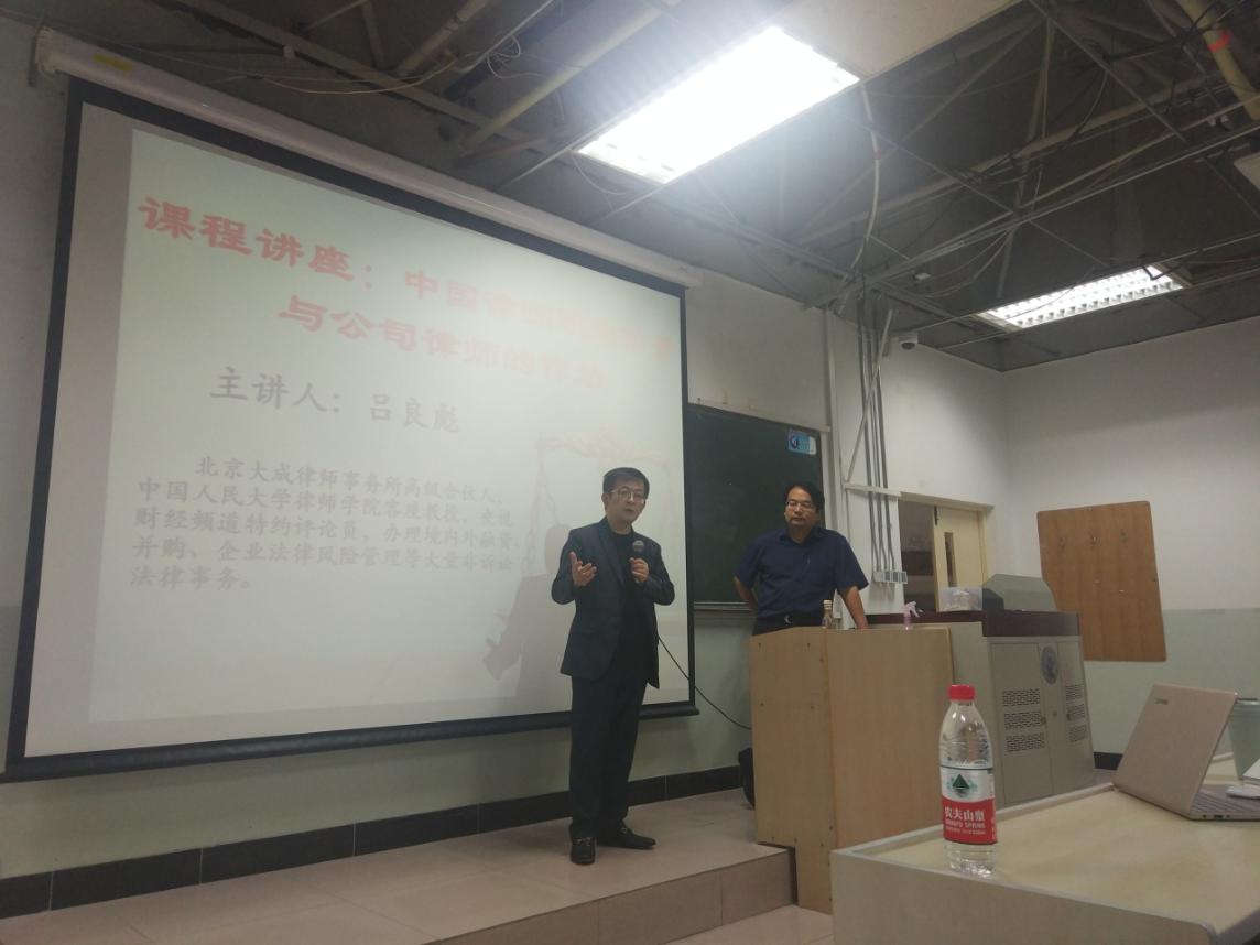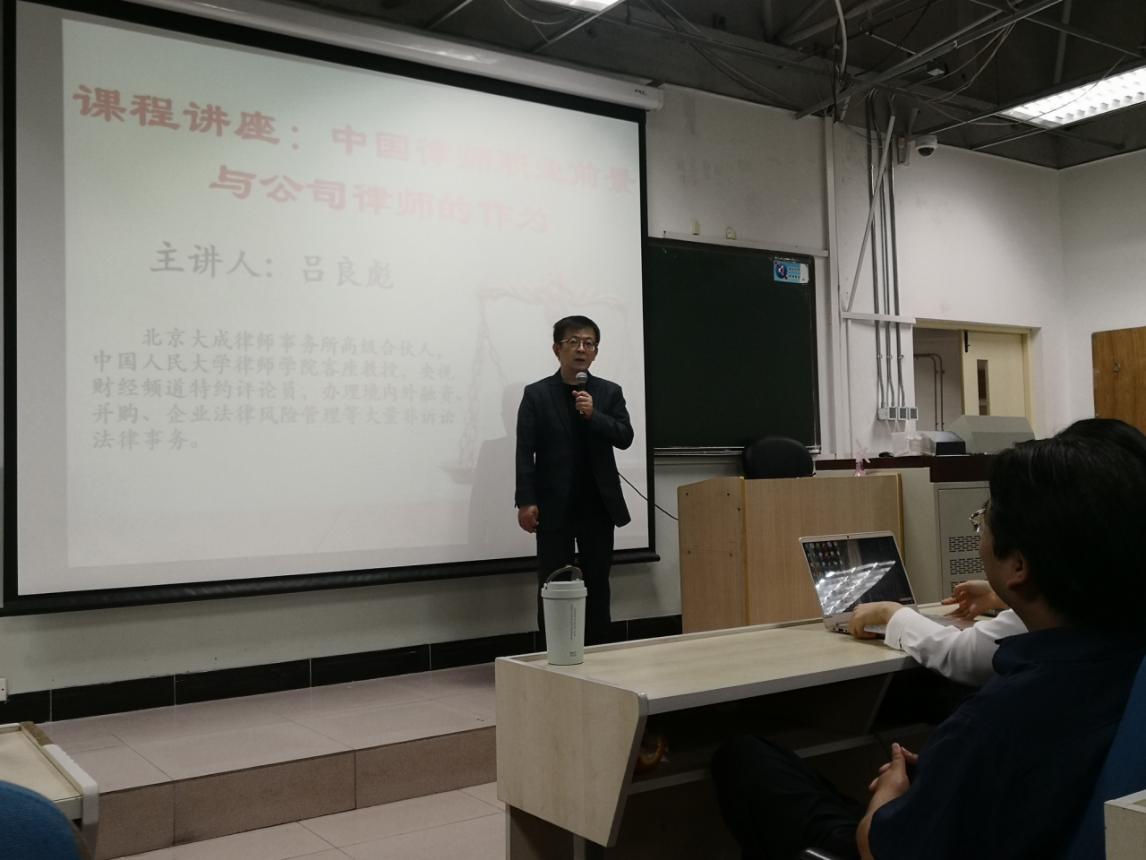 2019年5月30日,北京大成律師事務所高級合伙人、著名律師呂良彪先生做客我院,作主題為“中國律師職業(yè)前景與公司律師的作為”的講座。本次活動為龍馬奮進?法律實務論壇的系列活動之一,由我院李軒副教授主持,受到我校研究生課堂嘉賓支持計劃支持,2018級法律碩士研究生和部分本科生到場參與交流。