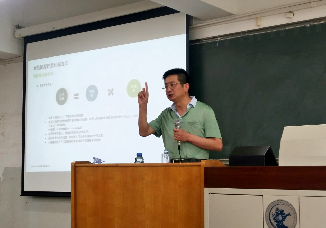 李權(quán)周總監(jiān)本次的授課主要圍繞“增值稅的歷史沿革和營(yíng)改增”展開(kāi),他選取了中國(guó)稅收的歷史沿革、現(xiàn)行的稅收熱點(diǎn)問(wèn)題和增值稅未來(lái)的改革方向三個(gè)議題為在場(chǎng)師生帶來(lái)了一場(chǎng)精彩的講演。