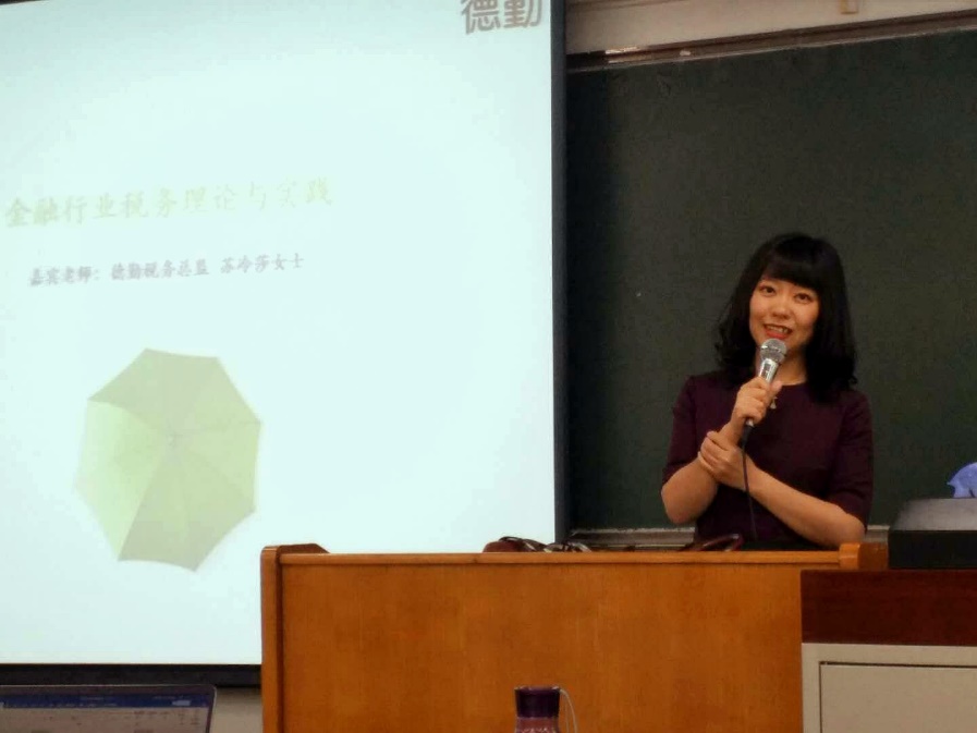 2019年4月30日上午,德勤中國稅務(wù)總監(jiān)蘇冷莎女士做客我院,為師生帶來關(guān)于“金融行業(yè)稅務(wù)理論與實(shí)踐”的精彩授課。本次活動(dòng)為龍馬奮進(jìn)?法律實(shí)務(wù)論壇的系列活動(dòng)之一,由我院郭維真副教授主持,受到我校研究生課堂嘉賓支持計(jì)劃支持。