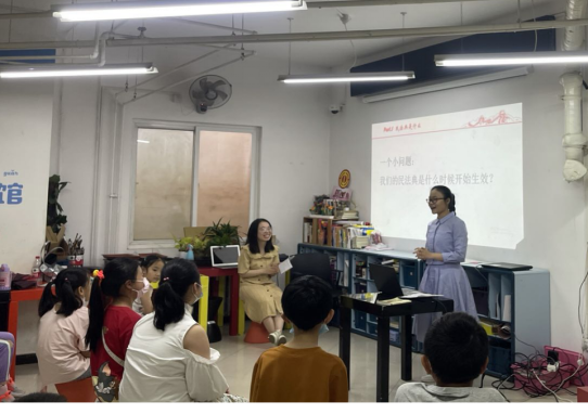 接著,陳婷婷、寇雅熙兩位同學循循善誘、深入淺出地向小朋友們闡述了《民法典》的主要內容。