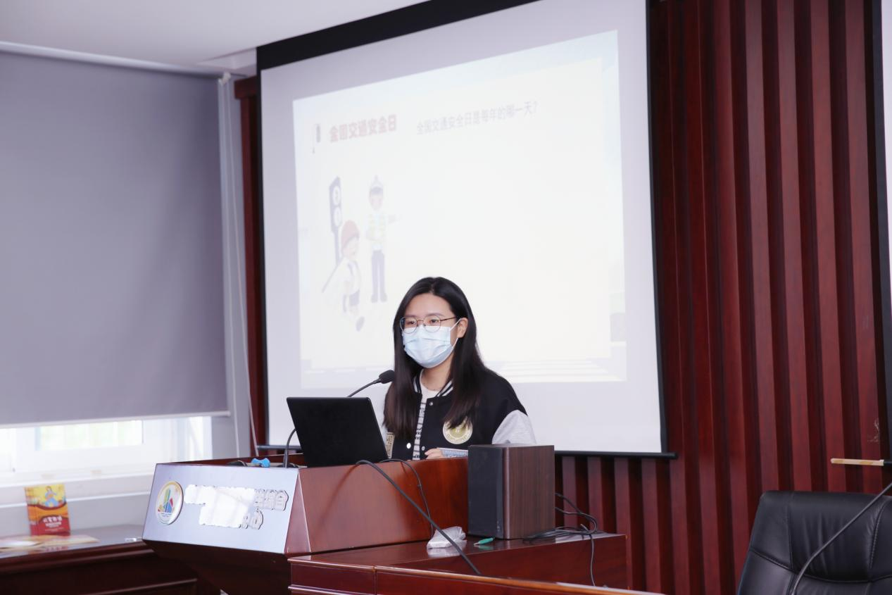 在宣講的第一部分,李曉瑜同學通過提問引導的方式向小朋友們介紹了我們的道路交通報警電話、全國交通安全日以及生活中常見的交通標志等生活常識,并且向小朋友們講解了在日常生活中我們?nèi)绾巫龅桨踩鲂幸约坝龅浇煌ㄊ鹿试撊绾翁幚怼?/p>