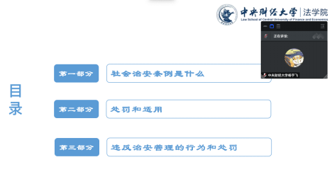 宣講分為三部分。社會(huì)治安條例是什么,宣講人通過(guò)引入對(duì)法條的分析,向聽眾們展示社會(huì)治安條例的內(nèi)容以及制定目的。治安管理處罰法的處罰方式和如何適用,宣講人通過(guò)一個(gè)個(gè)身邊的例子,生動(dòng)形象的向聽眾講解警告、罰款、拘留等處罰方式的適用情形。最后,宣講人通過(guò)違反治安管理處罰法的熱點(diǎn)案例,用法律思維分析,生動(dòng)形象向聽眾展示治安管理處罰法的具體適用,引導(dǎo)聽眾知法懂法,培養(yǎng)法治思維,樹立正確的法治觀念。