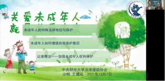 中央財(cái)經(jīng)大學(xué)法律援助協(xié)會(huì)積極參與由北京市司法局主辦、晨夕法律服務(wù)中心協(xié)辦的“青春船長(zhǎng),法治起航”線上普法宣傳活動(dòng)。來(lái)自協(xié)會(huì)的多名成員為參與宣傳活動(dòng)的觀眾帶來(lái)多場(chǎng)精彩的普法宣傳活動(dòng)。