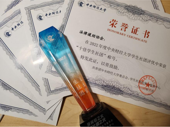 2023年3月15日,中央財(cái)經(jīng)大學(xué)法律援助協(xié)會(huì)在2022年度學(xué)生社團(tuán)評(píng)優(yōu)大會(huì)中榮獲“十佳學(xué)生社團(tuán)”稱號(hào),協(xié)會(huì)的 “普法進(jìn)萬家”項(xiàng)目獲評(píng)2022年“優(yōu)秀學(xué)生社團(tuán)活動(dòng)項(xiàng)目”,協(xié)會(huì)指導(dǎo)教師李偉老師獲評(píng)“十佳社團(tuán)指導(dǎo)老師”獎(jiǎng)項(xiàng),同時(shí)協(xié)會(huì)還斬獲了“十佳學(xué)生社團(tuán)負(fù)責(zé)人”(周雨欣 22級(jí)法碩法學(xué))和“社團(tuán)之星”(陶曉霞 法學(xué)19級(jí)本科生)等獎(jiǎng)項(xiàng),實(shí)現(xiàn)了五年以來社團(tuán)評(píng)優(yōu)獎(jiǎng)項(xiàng)的“大滿貫”!