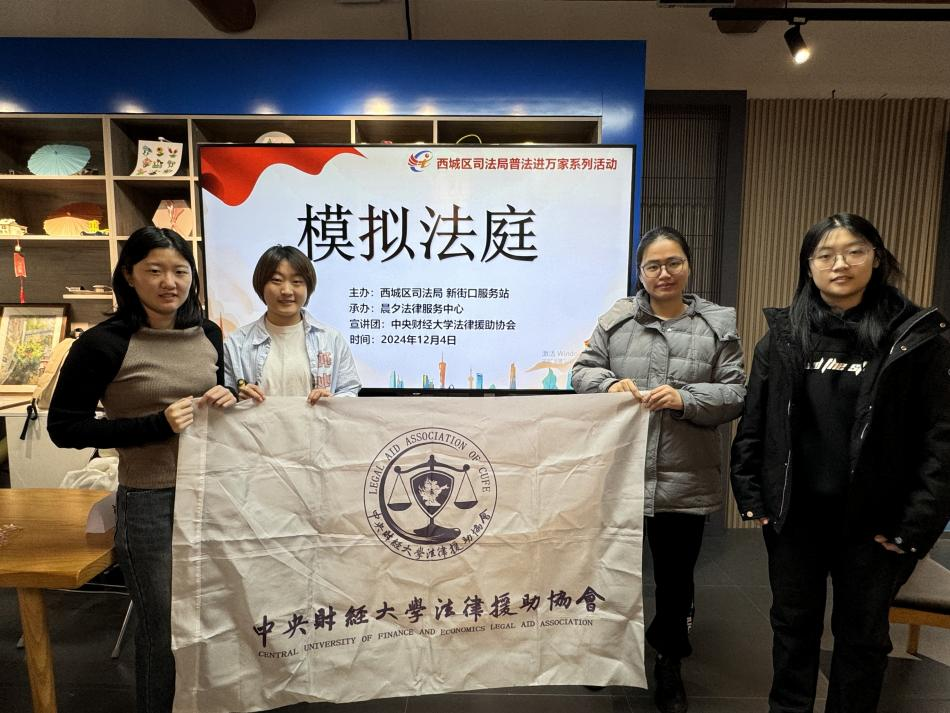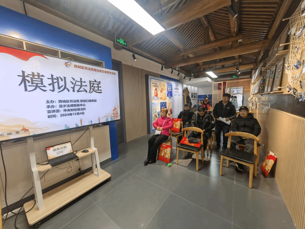 在國家憲法日之際,中央財經(jīng)大學(xué)法律援助協(xié)會的王丹彤、王海燕、安麗、韓俊妍四位同學(xué)于12月4日上午前往新街口街道辦事處司法所,開展了一場以“遺產(chǎn)繼承糾紛”為主題的模擬法庭普法活動,為社區(qū)居民呈現(xiàn)了一場法律知識的盛宴。活動由西城區(qū)司法局新街口服務(wù)站主辦,晨夕法律服務(wù)中心承辦,此次活動旨在通過模擬法庭的形式,向社區(qū)居民普及法律知識,提高他們的法律意識和自我保護能力。
